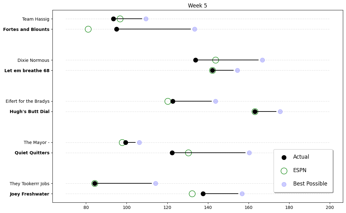 The Mayor got his ass kicked by Nick M this week. What a fucking embarrassment. Maybe if he spent more time fixing his shit city and less time setting his lineup he wouldn’t be in last place. Trevor, Alan, and Tyler all took tough losses this week. Tyler’s loss is especially tough because he was up against a girl. Come on man, you’re better than that. Brian continues to prove that he’s the best owner in the league with another convincing victory. - Fake Commish