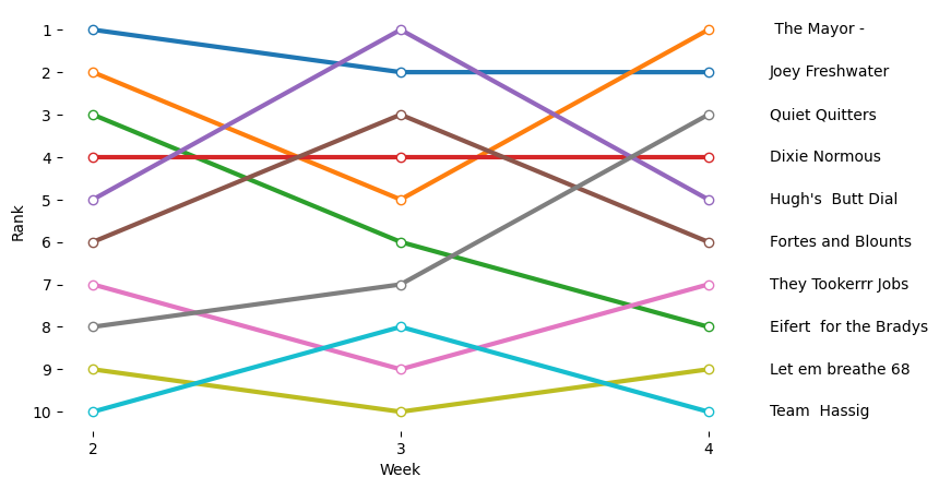 | 3 | Quiet Quitters | 21.65 | 2 | 1 | 0 | 59.80 | 353.86 | Nick M |