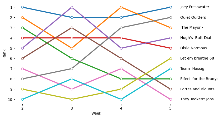 | 10 | They Tookerrr Jobs | 17.50 | 1 | 3 | 0 | 16.05 | 416.76 | Alan |