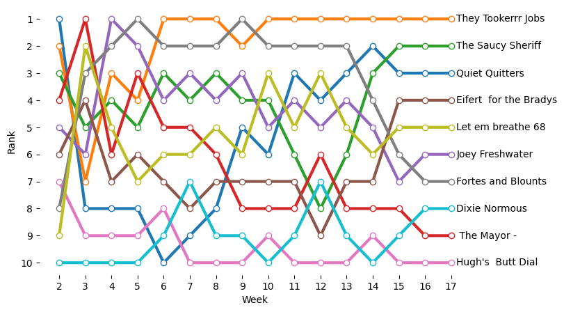 | Quiet Quitters | 8 | 5 | 0 | 1483.34 | Nick M |