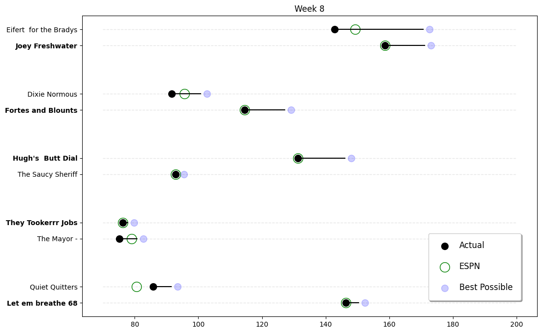 Week 8 brought us one of the WILDEST matchups of the season, one absolutely crushing performance, and the luckiest win you’ll see all year. Strap in, folks!