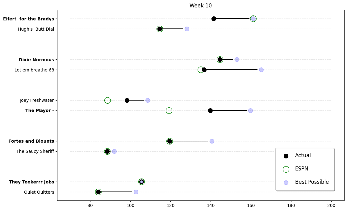 So let’s give it up for Trevor and David for monster performances, and pour one out for Lee who deserved so much better! Week 10—what a ride! - Fake Commish